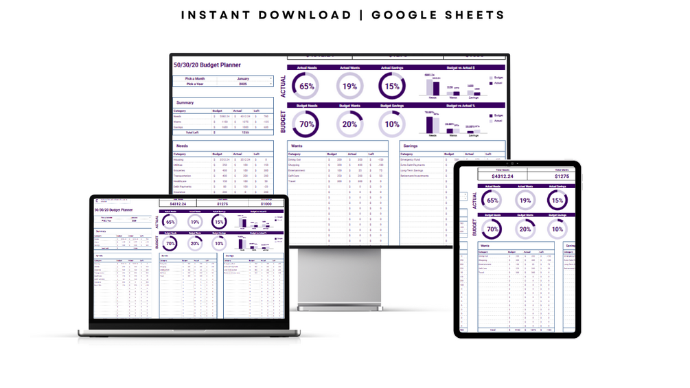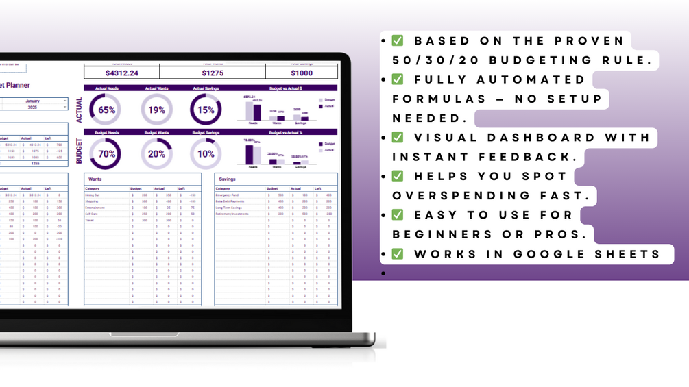 - ✅ Based on the proven 50/30/20 budgeting rule.